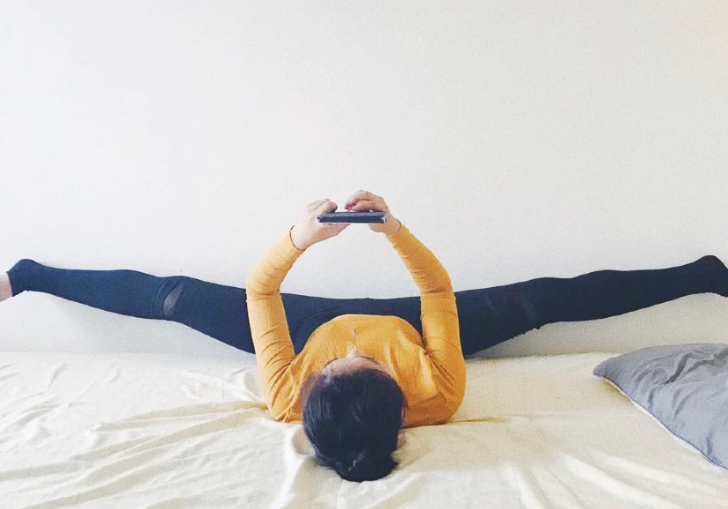 坐久害怕屁股变大腿变粗?不必放下手机走动,躺在床上也能完美伸展!第三招 : 开腿拉筋,首先将腿抬高成L型并贴合墙面,接着腹部核心施力伴随呼吸,双脚开合伸展,来回连续个10次。这招不只能练到核心马甲线,对于腿型的修饰也很有效果喔!