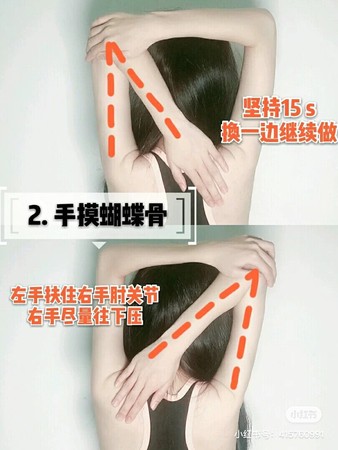 2.手摸蝴蝶骨(左右各坚持15秒为1组,共做3组)