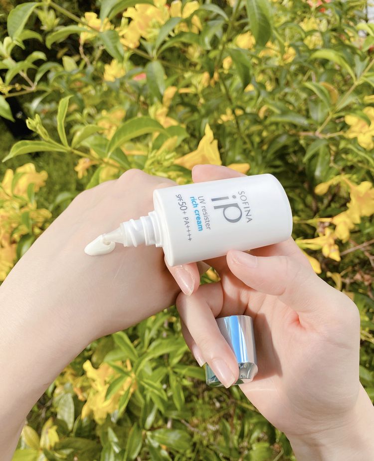 编辑是Sofina的粉丝,家中不少常备化妆品、护肤品也是这个品牌的出品。品牌新推出的防晒产品也没有令人失望。全新iP防晒精华有两款,一款是Rich Cream(防护霜),而另一款是Smooth Milk(防护乳 )。 两款最大分别是质地,编辑推介Rich Cream(防护霜)是因为它较柔润幼滑,保湿效果更佳,适合中性偏干甚至干肌人士。涂抹两三圈,己完全渗透肌肤,没有留下白印,而且透亮水润不黏腻,直接在表面上妆也可以,妆感贴服,表现不比其他妆前底霜逊色。结合SPF50+ PA++++ 高度防晒及精华成分,保护同时修护肌肤,属多效高CP值之选。