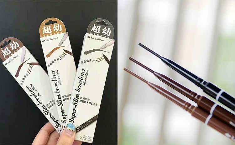 品牌的眉部产品一直备受口碑,身边有不少朋友也是丰盈眉笔(右)的爱好者,因为它的菱形笔头设计,轻画数下已可画出自然眉型,也非常柔滑显色(要看个人对眉笔的喜好,像是小编本身就不大喜欢太显色的眉笔),新手可以选这一款; 除了丰盈眉笔,大力推介大家试试另一款立体塑型眉笔(左),它的笔芯纤细,更能准确地描绘眉型,即使笔芯只有1.47mm,也不易断裂,这一款比较适合对画眉已相当有经验的朋友使用。两款眉笔也有12色选择,由浅金色、啡色到灰色,可应因发色选择。