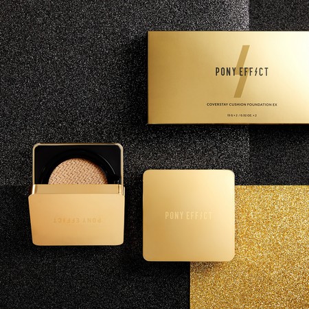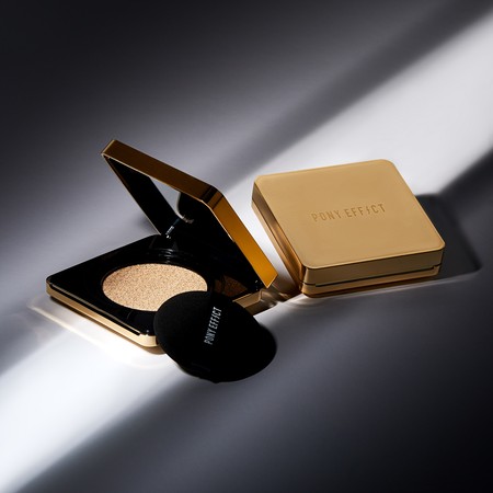 PONY EFFECT推出全新绝对持久无瑕气垫粉饼,外貌与实力兼具,换上时髦缎金色镜面包装与质感烫金LOGO,美得令人目不转睛。