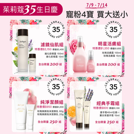 不需要等三倍券,倩碧抢开专柜品牌第一炮,7/10起推出水磁场保湿凝胶买一送一活动,Jurlique为欢庆35周年,也推出生日欢庆活动,旗下明星商品买大赠小,粉丝们快趁机补货,比振兴券更划算!