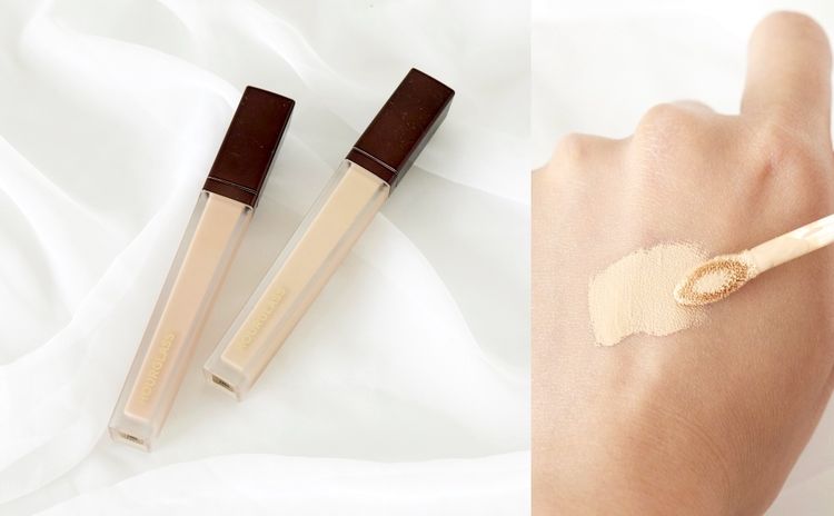遮瑕最忌太干,令眼纹暴现又卡粉,而Hourglass这款新推出的遮瑕液就令笔者很满意,奶油状质地跟一般粉底液很相似,能轻易融合底妆及肌肤,专柜化妆师更指很多人也会直接用它当粉底也OK!戴口罩的日子笔者就只用它遮盖黑眼圈,省略粉底,而涂抹的重点秘诀是份量一定要少,再慢慢扫开就能修饰瑕疵,而且效果持久贴服,没有细纹问题,不过最惊喜的部份还是品牌专属的遮瑕扫!(下文续)