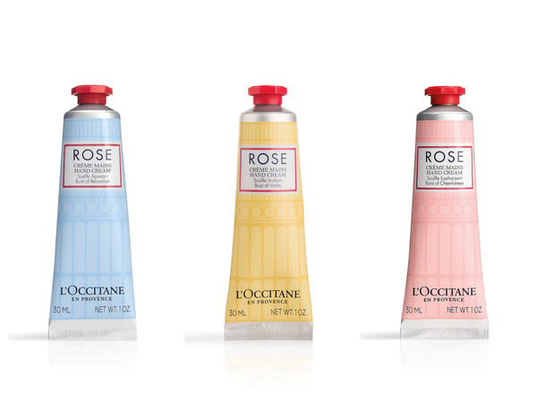 ▲L’OCCITANE 恬静玫瑰护手霜、活力玫瑰护手霜 、欢沁玫瑰护手霜,30ml,400元。