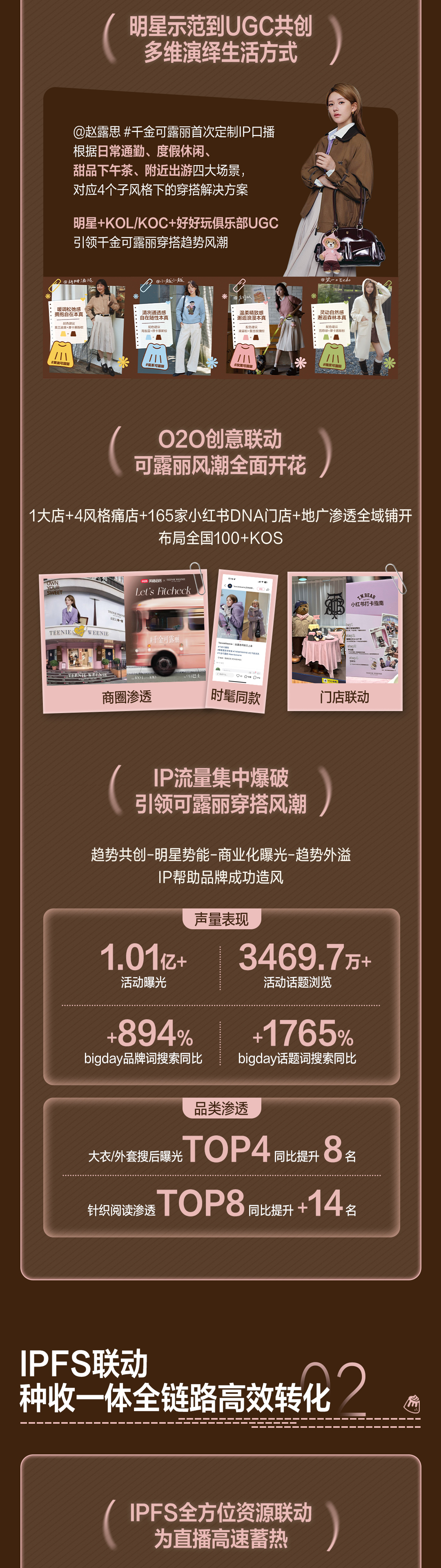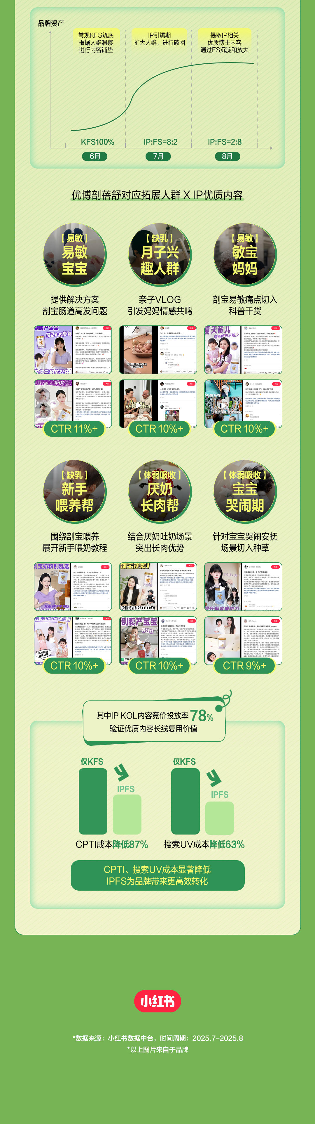 在IPFS的联动打法中,IP合作产出的优质内容(KOL/UGC笔记为核心),可作为品牌优质内容资产追投FS,实现原生口碑扩散,助力优质内容的影响力涟漪式放大;同时,IP触达和互动沉淀下来的精准人群资产,可通过定向投放与数据验证,实现种草效率与转化率的全面提升。从而将IP流量沉淀为可复用的内容资产与精准人群资产,持续提升品牌在小红书生态内的种草营销效率,形成从品宣曝光到生意转化的可复用增长路径。