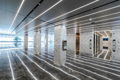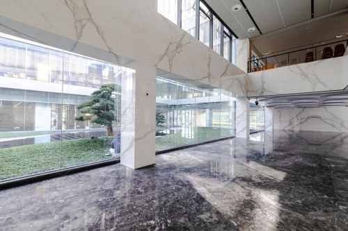 数智恒生中心为钢结构装配式建筑,这是一种最新的建造方式,各种装饰材料均选用低碳产品,马可波罗岩板的智能化生产、数字化管理及各项指标均达到国际先进水平,被授予国家级“绿色工厂”,正是如此严谨的选材才造就了这座真正的“环保大厦”。
