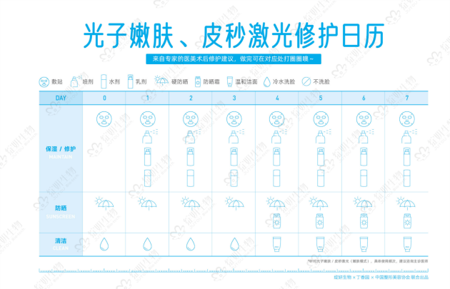 按照上述分类原则,针对常见项目,绽妍联合多位皮肤科专家进行详细的术后科学修护科普。以强脉冲光(光子嫩肤)为例,《指南》从是什么、适用场景、术前准备、术后注意事项以及急性期、恢复期、稳定期的修护进行介绍。通过图表的形式,直观提供修护原则和修护方案。