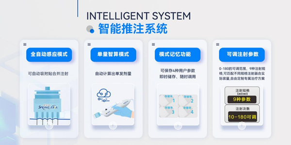 超大屏的全中文界面,注射模式、针剂剂量、负压程度、推进速度等多项参数全界面展示,一目了然。多种模式均可一键式操作,参数设置更简单,大大缩短设置时间,对新手操作十分友好。