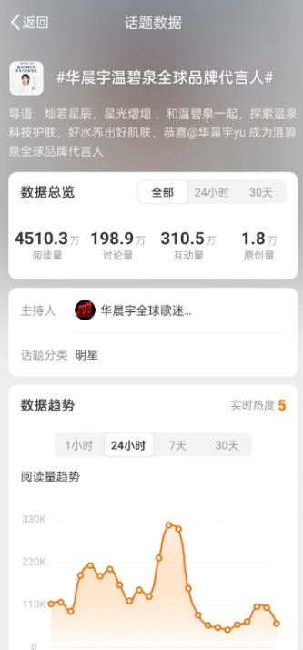当日,温碧泉与华晨宇共创的TVC在微博及其它各大社交平台上广泛传播,迅速吸引了众多关注。截至发稿,#华晨宇温碧泉全球品牌代言人#话题的阅读量已达到4500万+,讨论量达198万,互动量达310万。