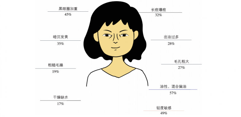 随着社会和经济的发展,人们的生活节奏不断加快、生活方式也日益丰富,熬夜已经逐渐成为当代国人的普遍生活习惯。据有关数据统计,过去10年,我国人均睡眠时间减少了将近2个小时。睡眠减少不仅对身体健康带来危害,也会导致一系列皮肤问题。我们将这种由于长时间熬夜、缺乏睡眠而导致的皮肤亚健康状态,定义为“熬夜肌”.