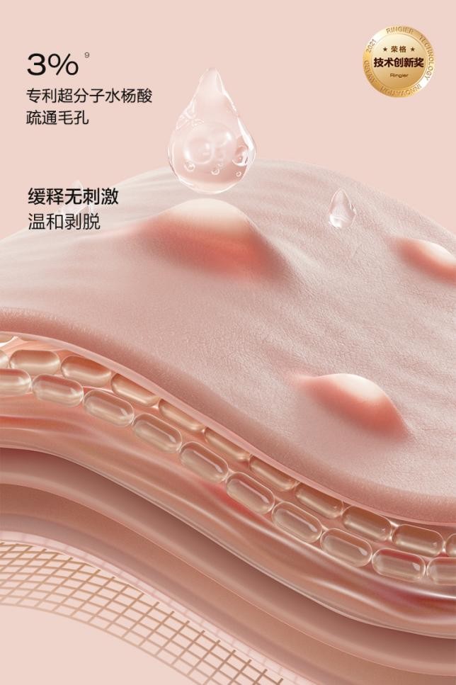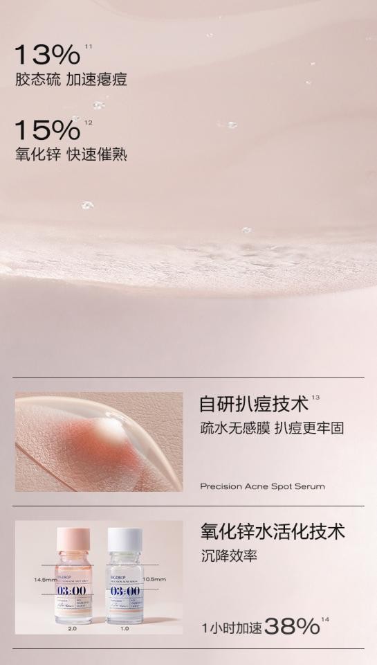 2023年,在耗时4900多个小时、经历了1000多次原料筛选和专利实验后,大水滴3点祛痘精华完成了2.0版的迭代升级,【大水滴3点祛痘精华2.0】在成分上将1.0时期1.7%传统水杨酸升级成3%超分子水杨酸,同时添加了海洋控油因子,完美解决了传统水杨酸刺激、脱皮的问题,使用更温和、祛痘更高效。