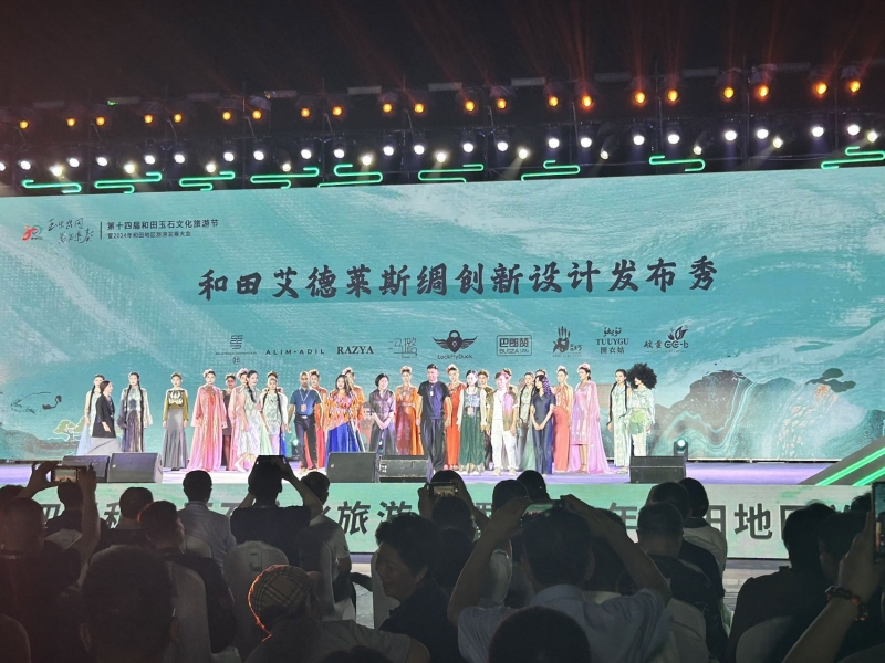当天的和田艾德莱斯绸创新设计发布秀,不仅是时尚服饰展,更是文化交流重要桥梁。和田古道昆仑文化传媒有限公司承办了本次发布秀活动,该公司总经理马星说:“和田玉和艾德莱斯相得益彰,中华传统文化的元素和地方特色工艺结合,叠加国潮元素、时尚元素,让发布秀呈现效果非常理想。”
