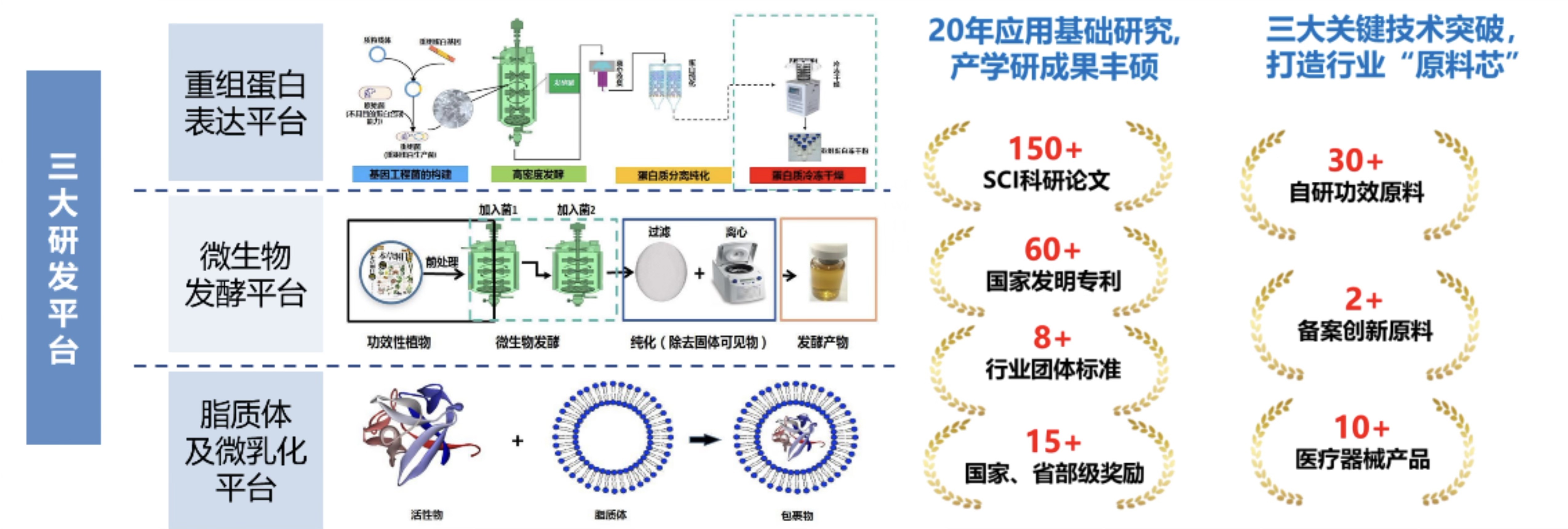 肽源生物是一家以合成生物学与生物技术为底层核心技术,聚焦于生物新材料研究及产品应用开发的高科技企业。自成立以来,肽源生物始终专注于生物材料、日化功效原料以及医疗器械产品的研发,重点建立了合成生物学与重组蛋白绿色制造技术、天然植物与微生物发酵技术、脂质体包裹及微乳化技术等三大关键技术平台,获批广东省医美材料与功效护肤品工程技术中心。以技术为引领,致力成为一家为功效护肤和健康医疗行业提供可再生创新材料的国内乃至全球领军企业。
