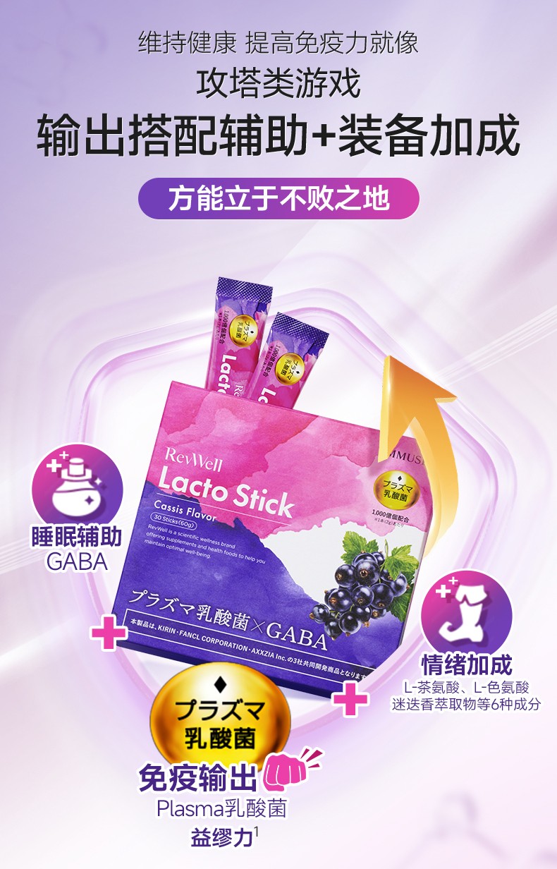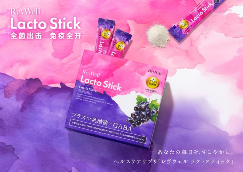 AXXZIA携手KIRIN、FANCL,三社强强联合推出全新健康补充剂「RevWell Lacto Stick」晓姿紫盾免疫粉,5月13日正式登陆中国跨境平台。