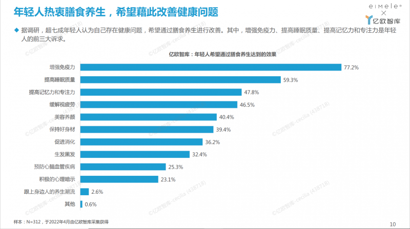 根据2022年亿欧智库调研,77%的年轻人期待通过膳食补充来提升免疫力,59%希望改善睡眠质量,然而市面上现有产品多存在使用门槛高、热量高、功效存疑等问题,尤其在“年轻人日常免疫+睡眠调节”这一核心需求上,尚无真正兼顾科学验证、成分安全且口感友好的解决方案。