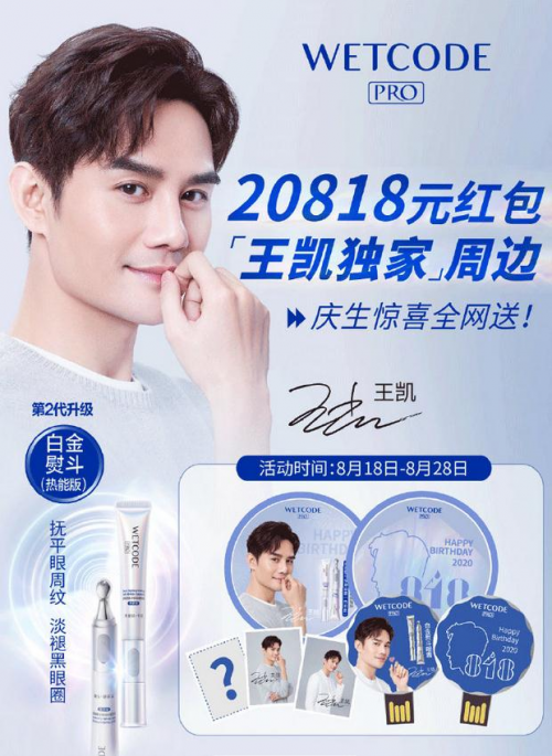 适逢8月18日是水密码代言人王凯的生日,即日起至8月28日,关注@水密码 官方微博和微信,参与明星互动和白金熨斗眼霜加购活动,将有机会获得王凯生日专属好礼,定制扇子、亲笔签名照、绝密定制U盘及20818元现金庆生红包等你来捕获!爱凯不休,温暖不止,快来为你的爱豆生日应援打call吧!