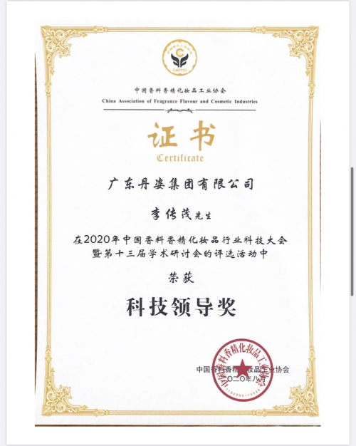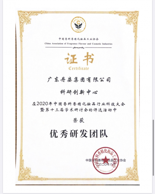 在科技创新的强劲势头下,丹姿集团捷报频传,屡获大奖!8月13日,“2020年中国香料香精化妆品行业科技大会暨第十三届学术研讨会”在苏州开幕,丹姿集团科研创新中心斩获优秀研发团队、科技领导奖等多项荣誉,企业科技硬核实力再次得到印证,为“科技水密码”等品牌建设发展提供强力支撑!