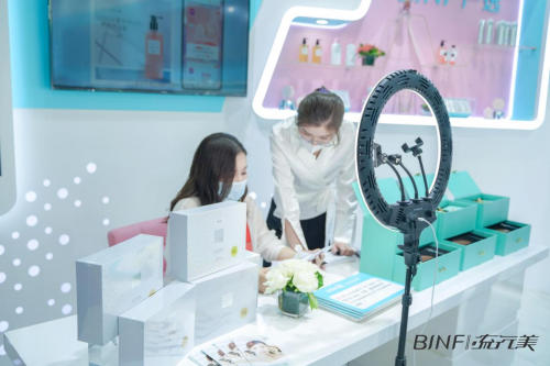 此次美博会展会期间,流行美烟酰胺美白新品系列、东方韵及新·声发饰新品系列震撼亮相;同时,现场还配备了自用一体的彩妆发饰梳妆及高端的肌肤护理仪,旨在让进馆观众切身体验“产品+服务”的极致享受。