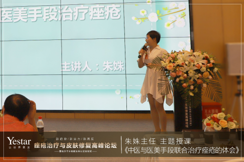 武汉艺星武昌院美容皮肤科朱姝主任,作了题为《中医与医美手段联合治疗痤疮的体会》的主题授课。她分析了痤疮治疗的现状,谈到当下痤疮治疗的复杂性,以及目前最领先的治疗理念。Yestar提出的医学祛痘方案,独创“6S分型祛痘管理”理念,结合中医与十多种国际领先的医美治疗手段,查痘源、清痘毒、拨痘根、细毛孔、平痘印/坑、修细胞,能根治反复长痘的可能,十分值得推崇。