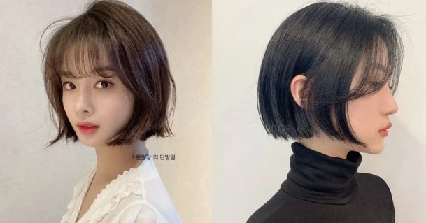 最后一款短发则适合脸部肉比较少、较骨感的人!脸部棱角明显比较容易显年纪,而短发就是一种很好的减龄工具~这款短发有点类似学生头、妹妹头的概念,让发尾完全齐平且不打薄,让头发本身的澎度能够澎润脸型~如果不想要太可爱,可以搭配大旁分或八字刘海。