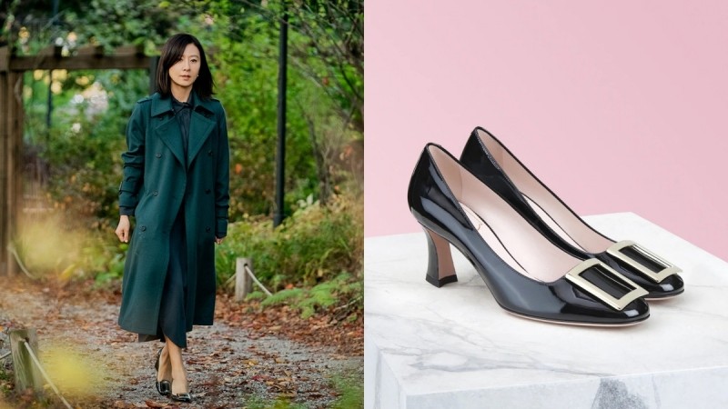 金喜爱在剧中呈现出贵气名媛的风格,在投资行头上,也以不退流行的经典款为主,除了包包之外,高跟鞋亦然,法国精品鞋履品牌Roger Vivier(RV)的方釦鞋,就是她的首选,剧中不只一次搭配,时常出现,能上班也能走在乡间小道上。