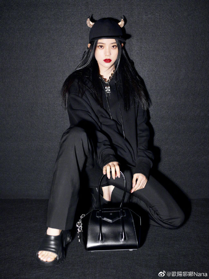 欧阳娜娜近期颇为活跃,日前出席大陆金鸡奖“转大人”秀深V造型颇受好评,与大陆歌手范丞丞合作的新歌《I Don’t Gotta Know》也刚上线,美照狂发。这回扮演“GIVENCHY女孩”穿著全身黑的造型,与刚染回黑色的发色特别相衬,搭配上鲜艳红唇妆容,显得肌肤更加白皙,流露出一股暗黑冷酷感。