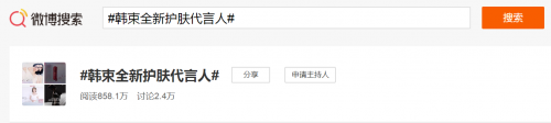 官宣期间,上美集团韩束再次展现出拥抱年轻用户、积极求变的战略方法论,以消费者喜闻乐见的方式,于微信、微博、微淘等社交媒体上与年轻用户频繁互动,全网引爆代言信息。截至5月13日17点,上美集团韩束携佟丽娅的20秒官宣视频播放量已突破235万次,官宣微博转发量近2万次,微博超话#上美集团韩束全新护肤代言人#累计阅读量就已达858.1万,转赞评总数累计2.4万条,传播效果可见一斑。