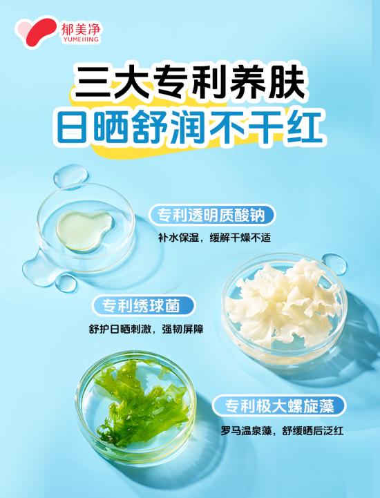 此外,郁美净这次还带来品牌最新研发的小云朵防晒。针对0岁以上婴幼儿娇嫩肌肤特质,郁美净精心研发了小云朵防晒乳,产品pH值接近肌肤天然酸碱度,不仅能温和呵护肌肤,更有效阻隔紫外线。针对活泼好动的3岁以上儿童,郁美净推出了小云朵防晒啫喱,采用了创新啫喱质地,一抹化水,容易推开;清爽不粘腻,适应跑步、游泳、露营各种户外环境,长效防晒不闷汗。