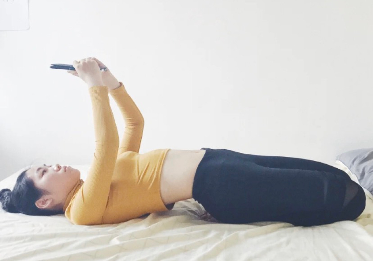 趴累了觉得手酸吗?这时妳还可以躺下来滑!第三招 : 慵懒躺式,这招也是集合前几招后的舒展放松 ~ 将双腿跪坐,接着缓慢地把身躯向后躺,同时将腰部提高,这时编滑手机还能边将双手向后伸展,也会有不错的疗愈效果呢 ~