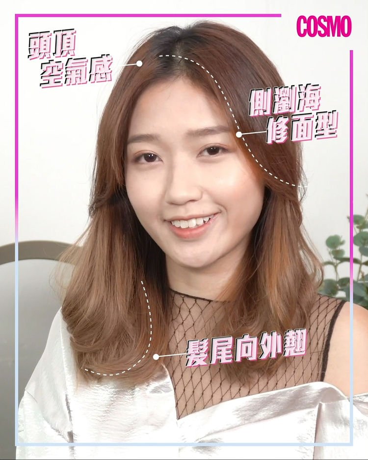 自然卷发绝对是包包面女生的最佳发型,但有几个小技巧一定要注意,否则只会弄巧反拙!首先要增加头顶的空气感,如果头发较细软、较扁塌的女生可以用Dry Shampoo去令发根变蓬松;再来就是外卷侧浏海,建议可以请发型师将浏海剪至约颧骨位置,这样就可以修饰较宽的面型;最外,发尾不规则外翘可以修饰到下巴线条,拉长面型。