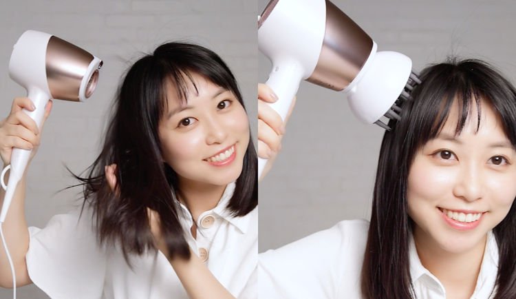 风筒具有3段式精密风速设定+4段式精密温度设定,能快速吹干头发同时调较不同的温度需求。笔者一直都有头发扁塌的烦恼,今次选用柔和干发风嘴吹头,它比其他风筒更能贴近我的头发根部,轻易吹出空气感,而且发质保持顺滑自然,实在是女生们的恩物。另外升级版的扩散风嘴也是亮点之一,它增长了出风齿位,更能抓住头发,轻松弄出自然的大曲发。