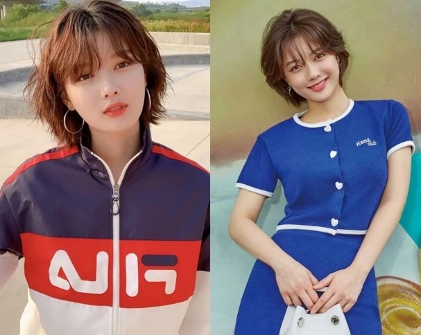 朴信惠不管是留长发还是短发,必备的刘海造型一定是八字刘海!八字刘海不仅能够从正面修饰脸部肉感,从侧面看起来,五官也会更立体~如果是短发的话,可以搭配一卷波浪卷,让卷度刚好位在耳朵附近,修饰脸型效果就很好!