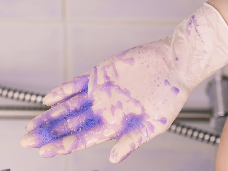 如果你买了salon级,效果很强劲的去黄洗头水,根据笔者个人经验,建议大家最好戴手套(特别有gel甲),不然颜色很容易染到指甲边,变得脏脏的。如果紫色沾到浴室周围,一定要以最快速度洗走,不然很容易染色,像笔者就被人骂了好几次⋯⋯
