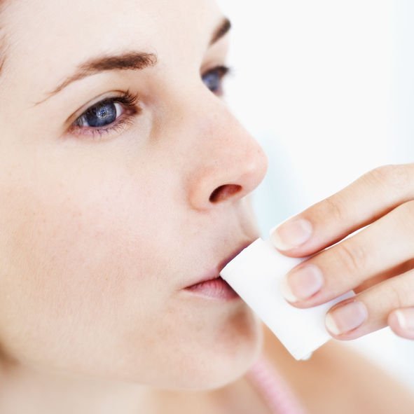 步骤1.将1-2茶匙,让油布满口腔每个角落包括舌下。