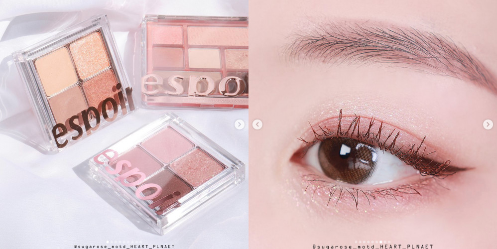 四色眼影盘是最常见的彩妆眼盘之一,最懂得抓住女人心的韩国彩妆品牌espoir就推出全新的四色眼影盘,带有一点烟熏玫瑰的粉红色,搭配其他浅色以及深邃色,可以创造出最美的温柔小姊姊眼妆,比起大地色还要受到欢迎。