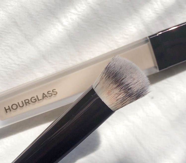 遮瑕最忌太干,令眼纹暴现又卡粉,而Hourglass这款新推出的遮瑕液就令笔者很满意,奶油状质地跟一般粉底液很相似,能轻易融合底妆及肌肤,专柜化妆师更指很多人也会直接用它当粉底也OK!戴口罩的日子笔者就只用它遮盖黑眼圈,省略粉底,而涂抹的重点秘诀是份量一定要少,再慢慢扫开就能修饰瑕疵,而且效果持久贴服,没有细纹问题,不过最惊喜的部份还是品牌专属的遮瑕扫!(下文续)