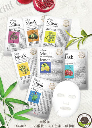 近期很受到关注的七天面膜,主打肌肤喝的蔬果精华,懒女孩直接打包就没错。第一天先以绿茶去除多馀角质及老废物质,均衡肤质油脂,第2天以富含胺基酸的石榴恢复肌肤弹力与光泽,第3天以竹根水做神层保湿补水,第4天以茶树精华来做肌肤的细致调理。第5天以芦荟做深层舒缓,第6天以酪梨来修复干燥肌肤,最后一天就用柠檬精华提升蜡黄暗沉。