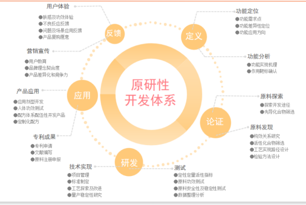 用户反馈是原研性开发体系中的最后一环,它是检验原研性开发体系是否成功,以及未来肽源集团开发体系改进方向的指示性环节,用户反馈应包括用户体验反馈和营销宣传反馈。随着功效性护肤时代的到来,人们更加注重产品的功效,肤感体验、功能作用、应用场景等成为用户体验重要标准。而营销宣传也是用户反馈的重要标准之一,肽源集团根据不同用户需求来科普一定的集团理念,打造集团与需求品牌之间的企业契合度,从而打造具备个性化的企业产品,提升产品差异化和竞争力。