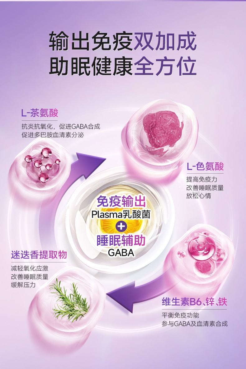 此外还复配了维生素B6、锌、铁,进一步平衡免疫功能,帮助提升睡眠和改善情绪。