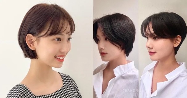 最后一款短发则适合脸部肉比较少、较骨感的人!脸部棱角明显比较容易显年纪,而短发就是一种很好的减龄工具~这款短发有点类似学生头、妹妹头的概念,让发尾完全齐平且不打薄,让头发本身的澎度能够澎润脸型~如果不想要太可爱,可以搭配大旁分或八字刘海。