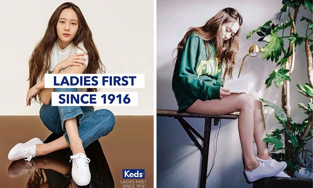 由韩国女团F(x)成员Krystal代言的美国帆布鞋品牌Keds,是不少女生心中的百搭鞋款之一。身为代言人的Krystal其实私下也爱穿,连她的姐姐Jessica、TWICE子瑜、Red Velvet Wendy、Girl's Day Yura等韩国女性私服穿搭都会看见这双小白鞋的身影。