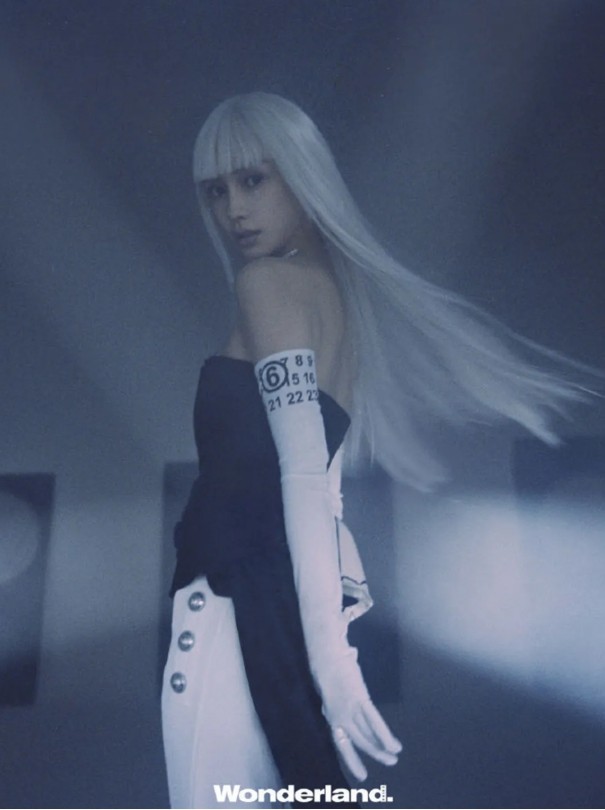 女星Angelababy(杨颖)日前在杂志拍摄中换上一头显眼银发,齐浏海造型露出精致五官,打造以往少有的科技感,同时穿著平口黑色洋装顺势露出显瘦锁骨,运用不规则前短后长剪裁丰富视觉效果,最后再以MM6 白色袖套包覆纤细手臂,整体造型十分率性且现代化,也突破Angelababy过往的柔美形象。