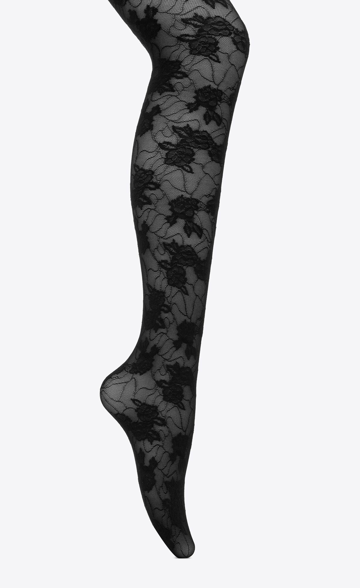 SAINT LAURENT花朵蕾丝透肤裤袜。