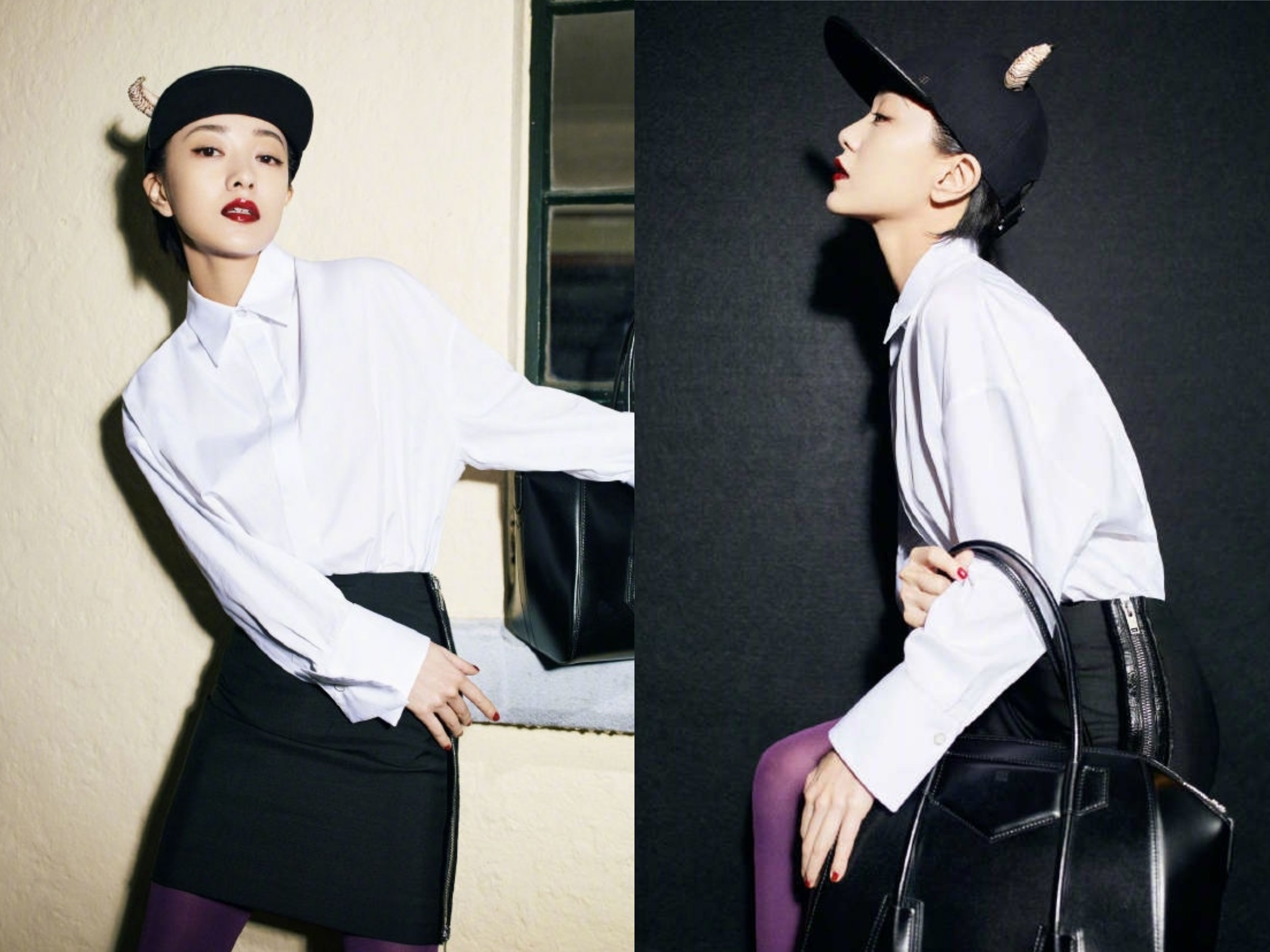 欧阳娜娜近期颇为活跃,日前出席大陆金鸡奖“转大人”秀深V造型颇受好评,与大陆歌手范丞丞合作的新歌《I Don’t Gotta Know》也刚上线,美照狂发。这回扮演“GIVENCHY女孩”穿著全身黑的造型,与刚染回黑色的发色特别相衬,搭配上鲜艳红唇妆容,显得肌肤更加白皙,流露出一股暗黑冷酷感。
