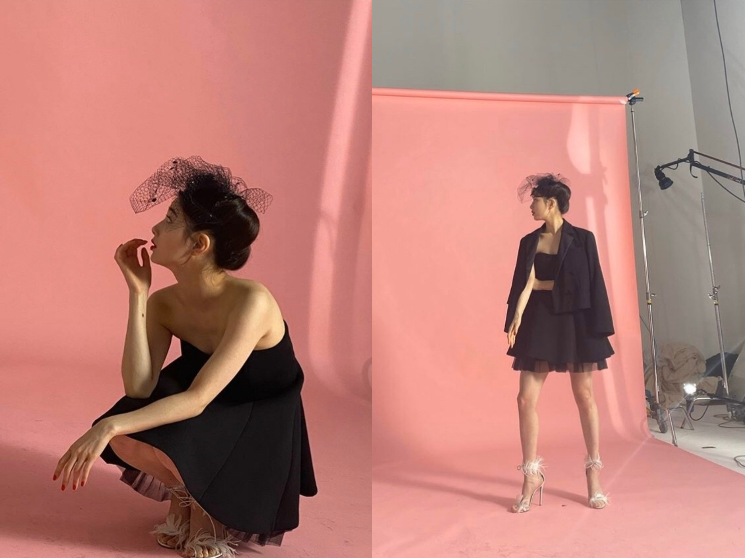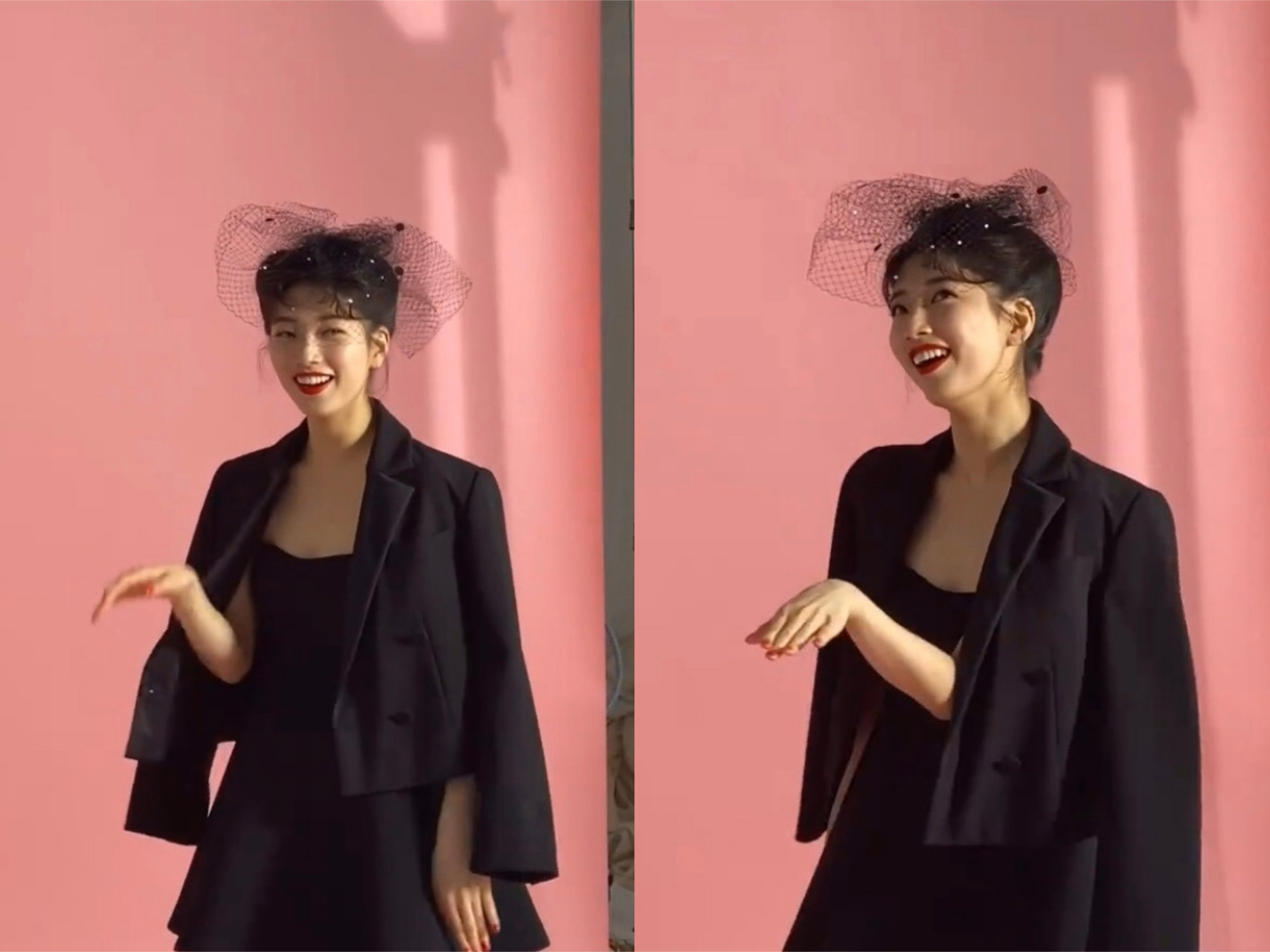 只要戴上这种网纱头饰,就能给人一种复古优雅的法式风情之感,曾在南韩掀起一阵流行风潮,尤其是IU在《德鲁纳酒店》的百变造型中,便出现了好几次,此次秀智换上了鲜少尝试的风格,并且难得展现性感韵味,比起IU似乎更有女人味一些。虽在镜头前摆出气势、美艳的姿态,但私下活泼个性的秀智,在拍摄现场听到法国歌谣《Comment te dire adieu》便随之起舞,逗得现场笑声不断,女神可爱的模样又更加吸引人了。